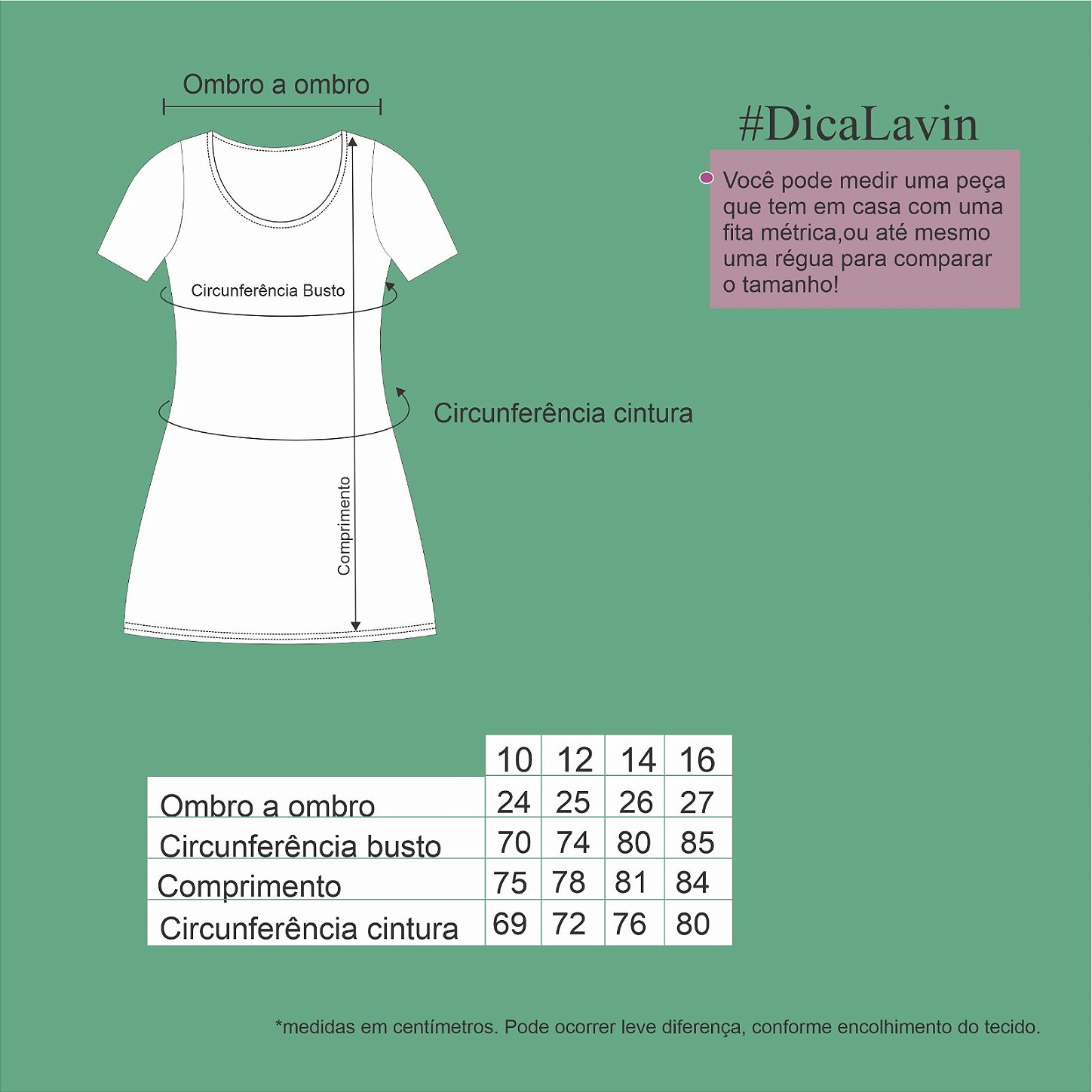 Tabela de medidas:
